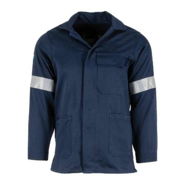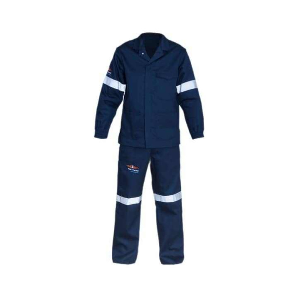 Delivering critical protection in hazardous environments, our FD280 100% Cotton Acid And Flame Retardant Worksuit with Reflective Tape is engineered for safety and durability, crafted from specialised 100% cotton fabric treated for acid and flame retardant properties. The jacket features two big open pockets below the belly line for handy access plus double or single chest pockets with secure velcro closure for storing essentials. Trousers are equipped with an in-seam or applied pocket for storage and a back open pocket for added practicality. Enhanced with reflective tape for increased visibility in low-light conditions, boosting safety on worksites. Designed for industries facing chemical, thermal, or fire risks like chemical processing, oil & gas, electrical maintenance – providing protection and functionality for high-risk work environments.