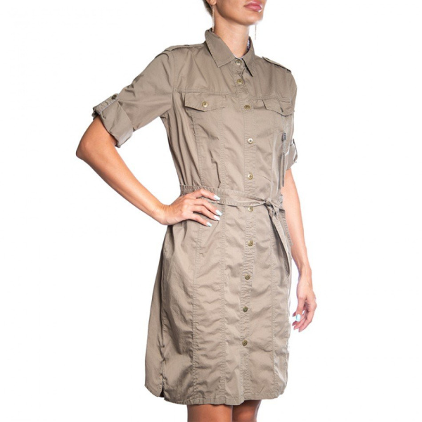 Lady's Utility Front Open Khaki Dress 100% cotton