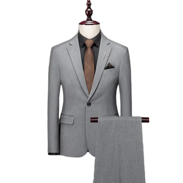 Make a powerful statement with our tailored man's formal suit, crafted from 100% cotton or durable blend fabrics. Designed to make a lasting impression, this suit features a tailored fit and classic design that exudes sophistication and elegance. Whether you're sealing a deal, attending a wedding, or networking at a high-end event, our suit is the ultimate choice. Pair it with a crisp dress shirt and tie for a sharp, professional look that commands respect. Perfect for the modern gentleman who demands style, quality, and confidence. Available in a variety of stylish colors to suit your unique taste and preference. This suit comes in 1-button style and is offered in both slim and regular fits to ensure a perfect silhouette.
